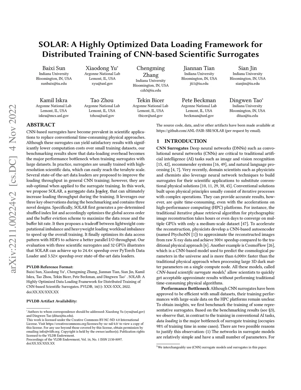CNN-based surrogates have become prevalent in scientific applications to replace conventional time-consuming physical approaches. Although these surrogates can yield satisfactory results with significantly lower computation costs over small training datasets, our benchmarking results show that data-loading overhead becomes the major performance bottleneck when training surrogates with large datasets. In practice, surrogates are usually trained with high-resolution scientific data, which can easily reach the terabyte scale. Several state-of-the-art data loaders are proposed to improve the loading throughput in general CNN training; however, they are sub-optimal when applied to the surrogate training. In this work, we propose SOLAR, a surrogate data loader, that can ultimately increase loading throughput during the training. It leverages our three key observations during the benchmarking and contains three novel designs. Specifically, SOLAR first generates a pre-determined shuffled index list and accordingly optimizes the global access order and the buffer eviction scheme to maximize the data reuse and the buffer hit rate. It then proposes a tradeoff between lightweight computational imbalance and heavyweight loading workload imbalance to speed up the overall training. It finally optimizes its data access pattern with HDF5 to achieve a better parallel I/O throughput. Our evaluation with three scientific surrogates and 32 GPUs illustrates that SOLAR can achieve up to 24.4X speedup over PyTorch Data Loader and 3.52X speedup over state-of-the-art data loaders.