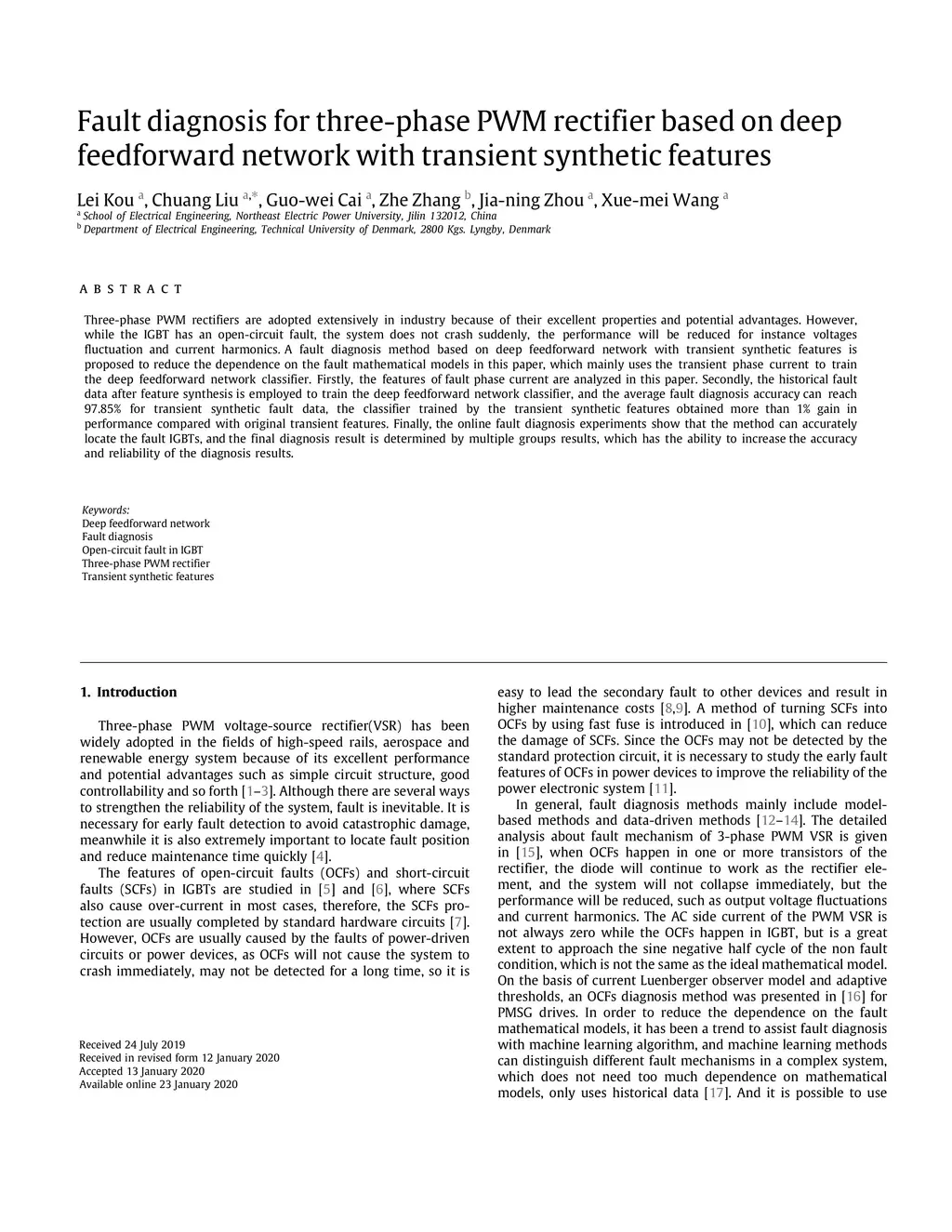 Fault diagnosis for three-phase PWM rectifier based on deep feedforward