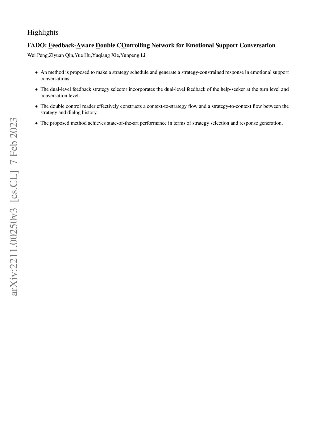 FADO: Feedback-Aware Double COntrolling Network for Emotional Support