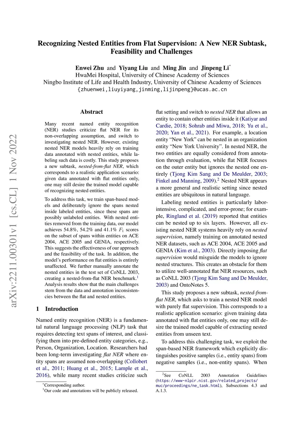 Recognizing Nested Entities from Flat Supervision: A New NER Subtask,