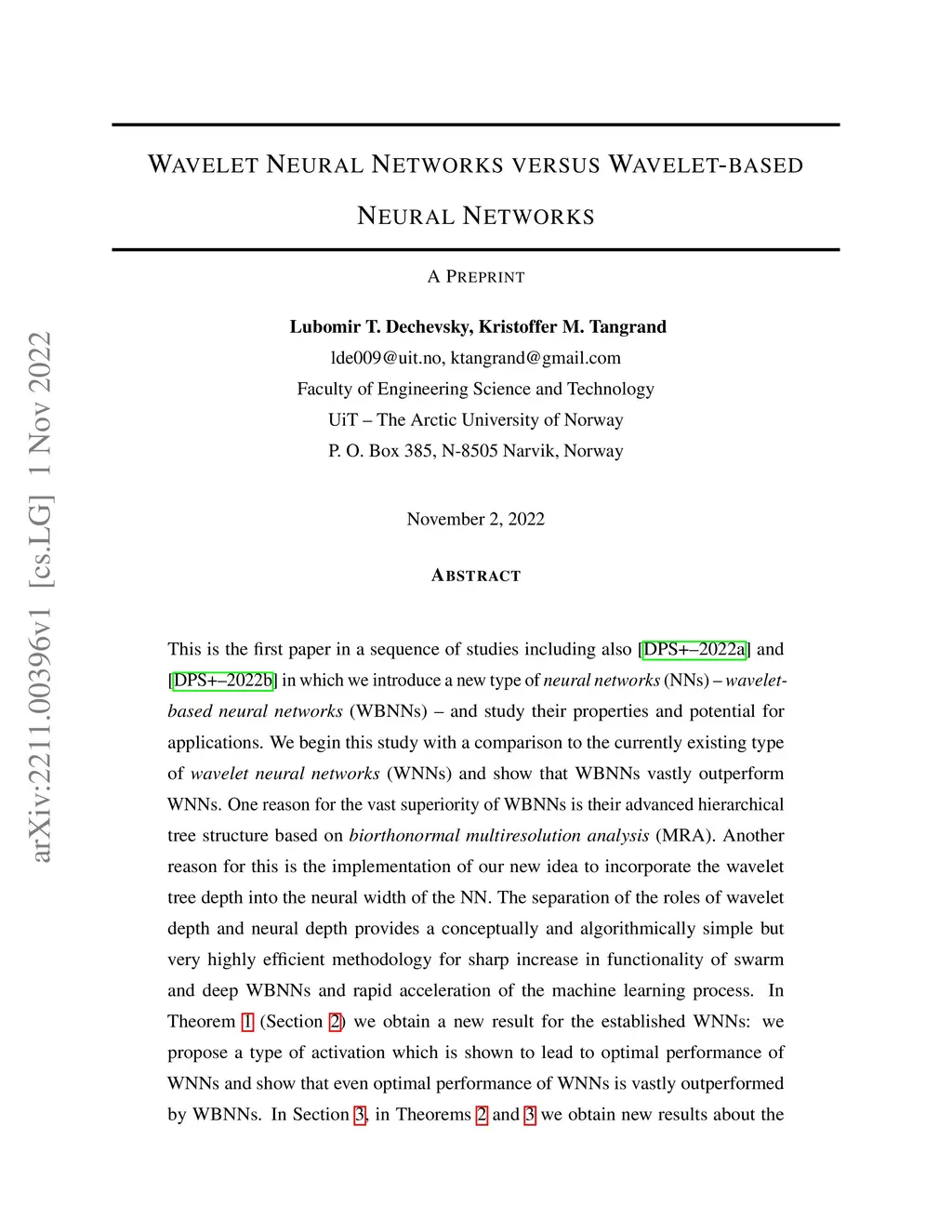 This is the first paper in a sequence of studies in which we introduce a new type of neural networks (NNs) -- wavelet-based neural networks (WBNNs) -- and study their properties and potential for applications. We begin this study with a comparison to the currently existing type of wavelet neural networks (WNNs) and show that WBNNs vastly outperform WNNs. One reason for the vast superiority of WBNNs is their advanced hierarchical tree structure based on biorthonormal multiresolution analysis (MRA). Another reason for this is the implementation of our new idea to incorporate the wavelet tree depth into the neural width of the NN. The separation of the roles of wavelet depth and neural depth provides a conceptually and algorithmically simple but highly efficient methodology for sharp increase in functionality of swarm and deep WBNNs and rapid acceleration of the machine learning process.