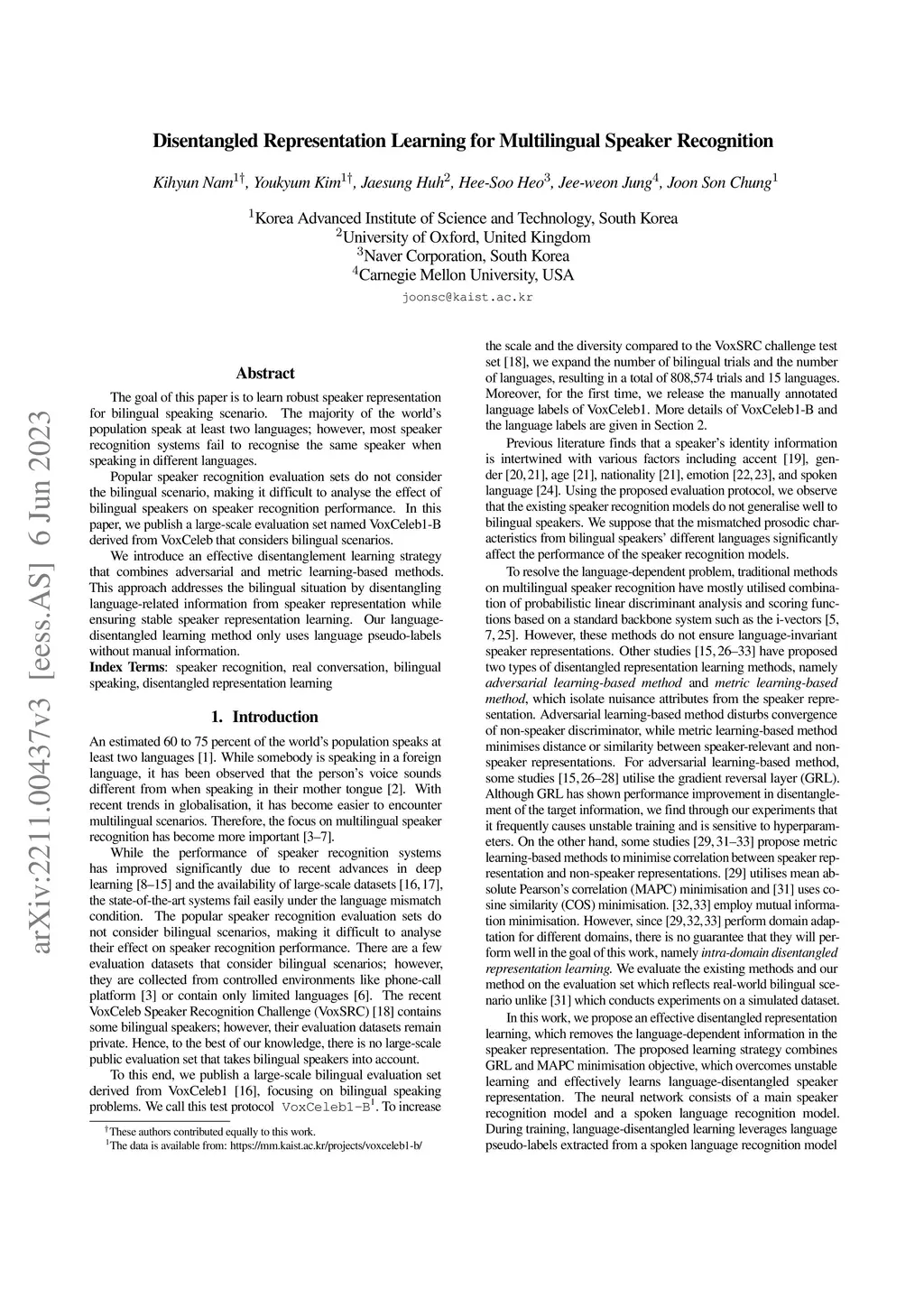 The goal of this paper is to train speaker embeddings that are robust to bilingual speaking scenario. The majority of the world's population speak at least two languages; however, most speaker recognition systems fail to recognise the same speaker when speaking in different languages. Popular speaker recognition evaluation sets do not consider the bilingual scenario, making it difficult to analyse the effect of bilingual speakers on speaker recognition performance. This paper proposes a new large-scale evaluation set derived from VoxCeleb that considers bilingual scenarios. We also introduce a representation learning strategy, which disentangles language information from speaker representation to account for the bilingual scenario. This language-disentangled representation learning strategy can be adapted to existing models with small changes to the training pipeline. Experimental results demonstrate that the baseline models suffer significant performance degradation when evaluated on the proposed bilingual test set. On the contrary, the model trained with the proposed disentanglement strategy shows significant improvement under the bilingual evaluation scenario while simultaneously retaining competitive performance on existing monolingual test sets.