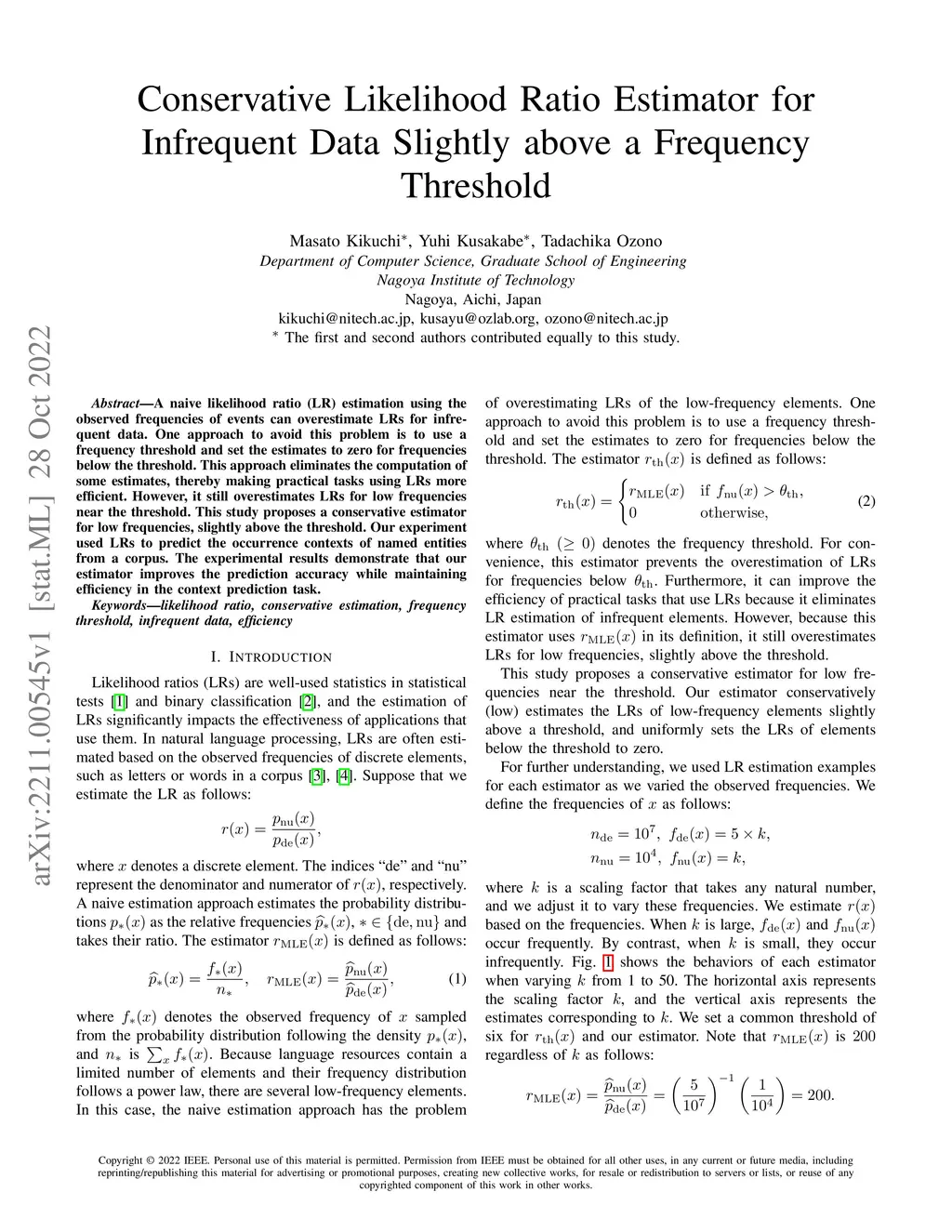 Conservative Likelihood Ratio Estimator for Infrequent Data Slightly