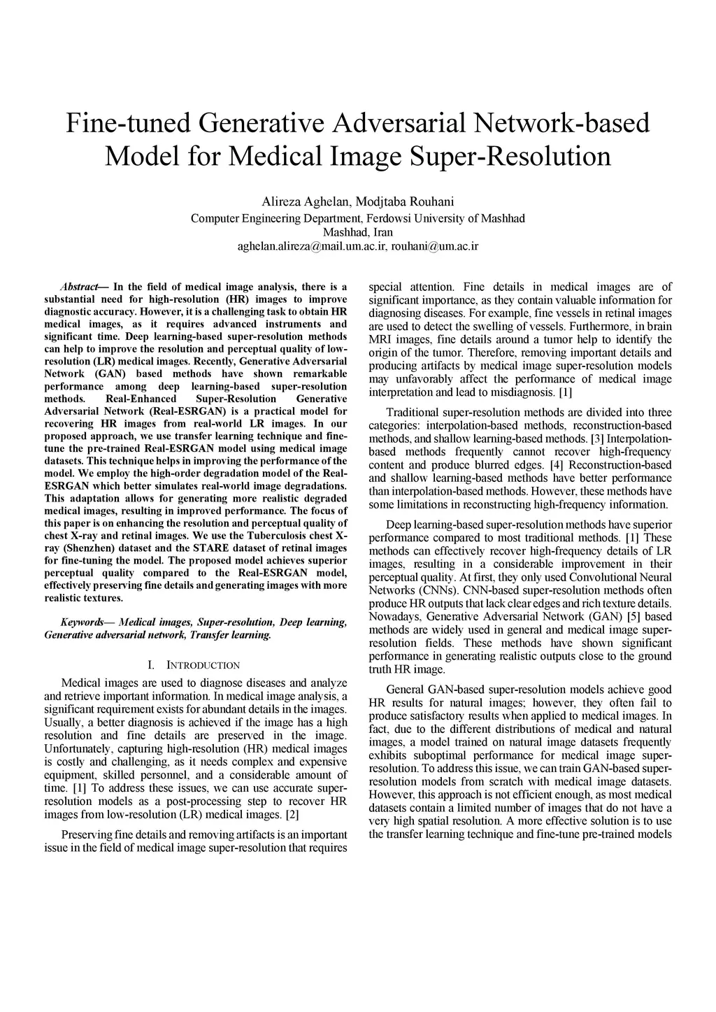 In the field of medical image analysis, there is a substantial need for high-resolution (HR) images to improve diagnostic accuracy. However, it is a challenging task to obtain HR medical images, as it requires advanced instruments and significant time. Deep learning-based super-resolution methods can help to improve the resolution and perceptual quality of low-resolution (LR) medical images. Recently, Generative Adversarial Network (GAN) based methods have shown remarkable performance among deep learning-based super-resolution methods. Real-Enhanced Super-Resolution Generative Adversarial Network (Real-ESRGAN) is a practical model for recovering HR images from real-world LR images. In our proposed approach, we use transfer learning technique and fine-tune the pre-trained Real-ESRGAN model using medical image datasets. This technique helps in improving the performance of the model. We employ the high-order degradation model of the Real-ESRGAN which better simulates real-world image degradations. This adaptation allows for generating more realistic degraded medical images, resulting in improved performance. The focus of this paper is on enhancing the resolution and perceptual quality of chest X-ray and retinal images. We use the Tuberculosis chest X-ray (Shenzhen) dataset and the STARE dataset of retinal images for fine-tuning the model. The proposed model achieves superior perceptual quality compared to the Real-ESRGAN model, effectively preserving fine details and generating images with more realistic textures.