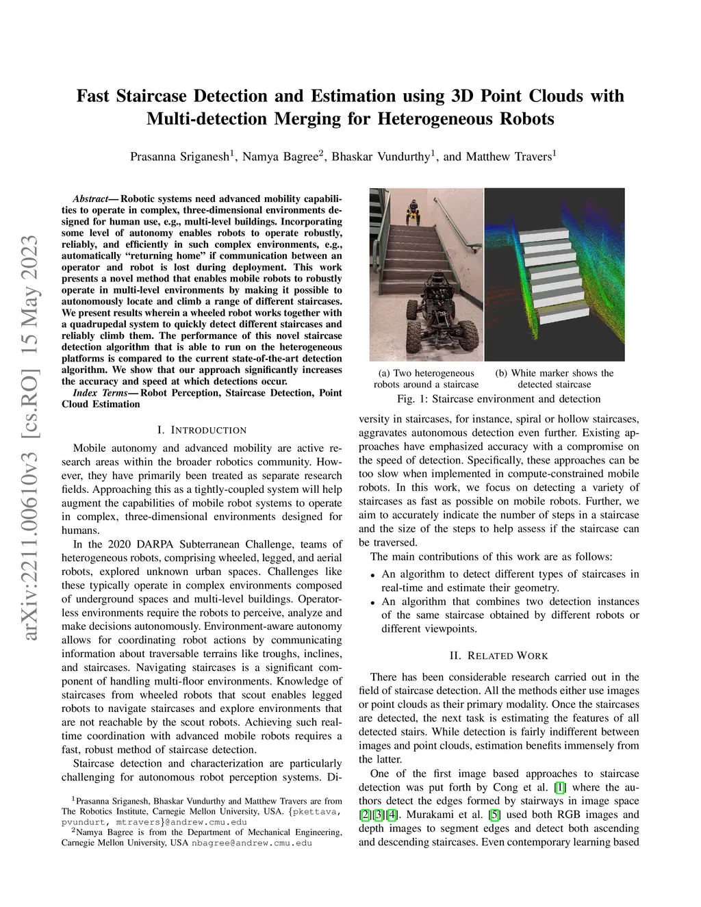 Robotic systems need advanced mobility capabilities to operate in complex, three-dimensional environments designed for human use, e.g., multi-level buildings. Incorporating some level of autonomy enables robots to operate robustly, reliably, and efficiently in such complex environments, e.g., automatically "returning home" if communication between an operator and robot is lost during deployment. This work presents a novel method that enables mobile robots to robustly operate in multi-level environments by making it possible to autonomously locate and climb a range of different staircases. We present results wherein a wheeled robot works together with a quadrupedal system to quickly detect different staircases and reliably climb them. The performance of this novel staircase detection algorithm that is able to run on the heterogeneous platforms is compared to the current state-of-the-art detection algorithm. We show that our approach significantly increases the accuracy and speed at which detections occur.