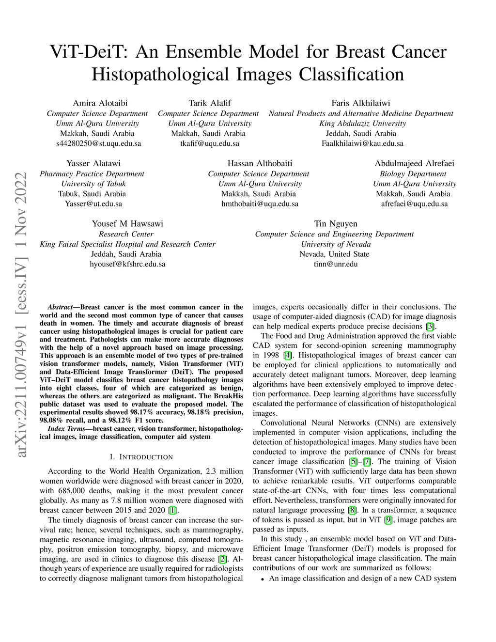 ViT-DeiT: An Ensemble Model for Breast Cancer Histopathological Images