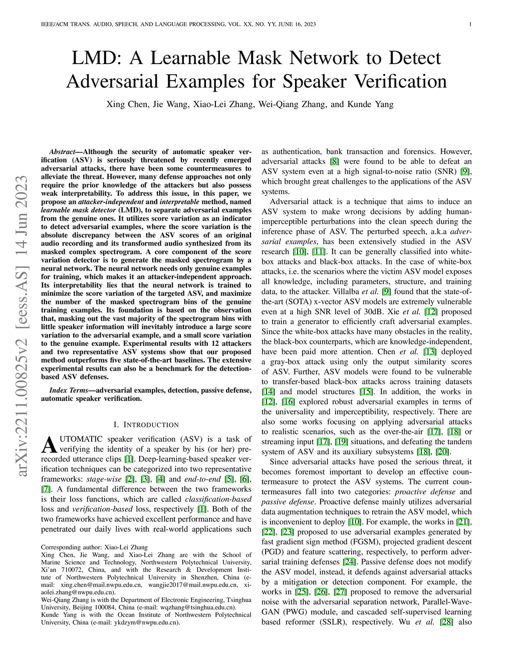 LMD: A Learnable Mask Network to Detect Adversarial Examples for Speaker