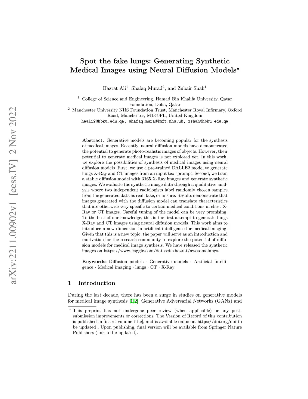 Spot the fake lungs: Generating Synthetic Medical Images using Neural