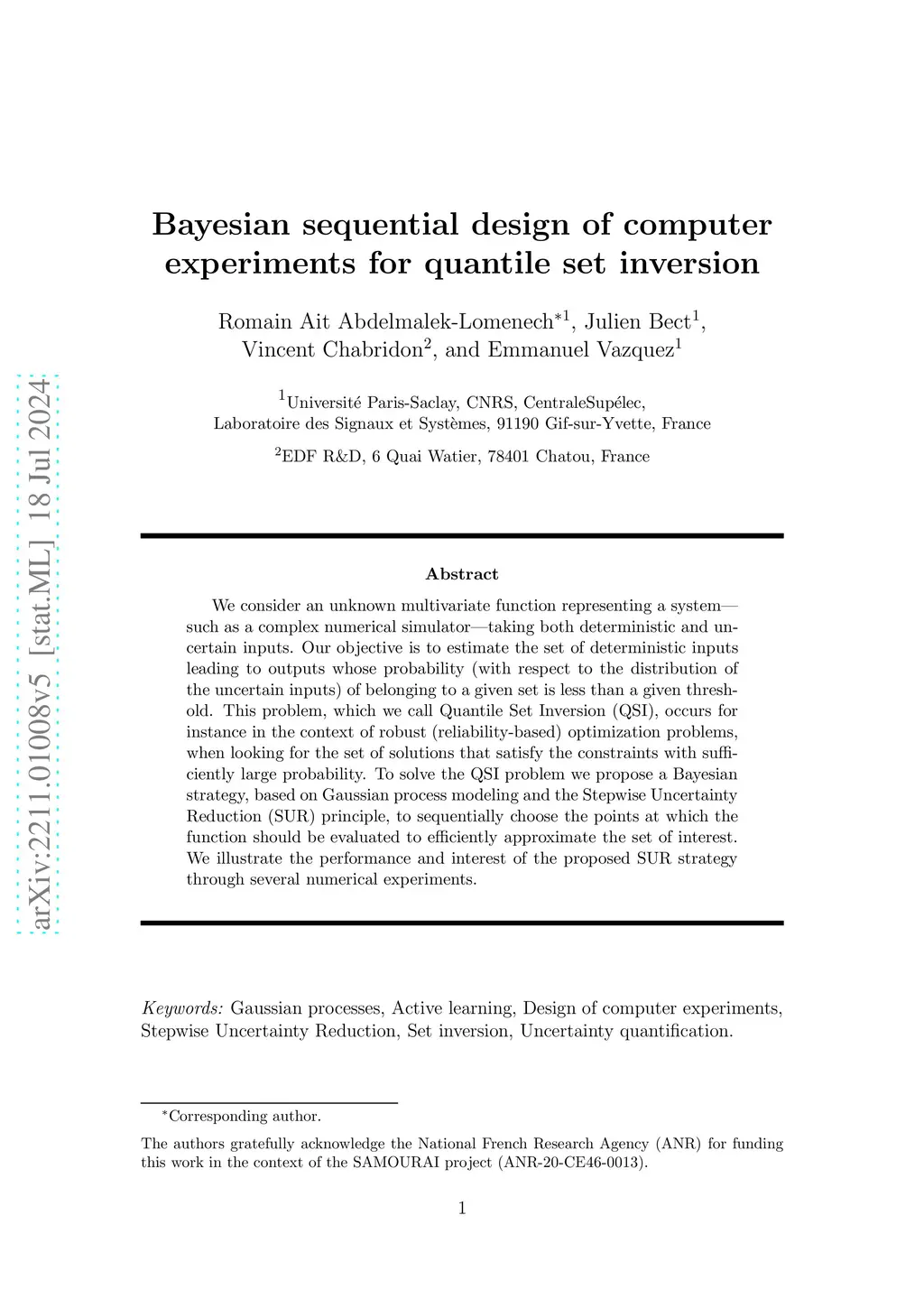 We consider an unknown multivariate function representing a system-such as a complex numerical simulator-taking both deterministic and uncertain inputs. Our objective is to estimate the set of deterministic inputs leading to outputs whose probability (with respect to the distribution of the uncertain inputs) of belonging to a given set is less than a given threshold. This problem, which we call Quantile Set Inversion (QSI), occurs for instance in the context of robust (reliability-based) optimization problems, when looking for the set of solutions that satisfy the constraints with sufficiently large probability. To solve the QSI problem we propose a Bayesian strategy, based on Gaussian process modeling and the Stepwise Uncertainty Reduction (SUR) principle, to sequentially choose the points at which the function should be evaluated to efficiently approximate the set of interest. We illustrate the performance and interest of the proposed SUR strategy through several numerical experiments.