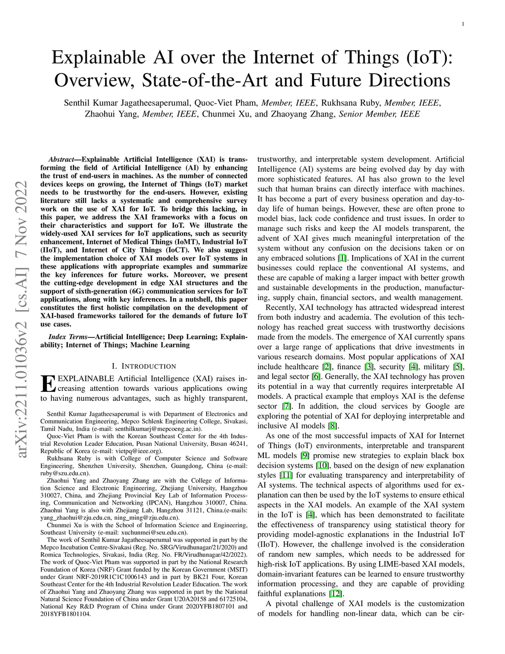Explainable Artificial Intelligence (XAI) is transforming the field of Artificial Intelligence (AI) by enhancing the trust of end-users in machines. As the number of connected devices keeps on growing, the Internet of Things (IoT) market needs to be trustworthy for the end-users. However, existing literature still lacks a systematic and comprehensive survey work on the use of XAI for IoT. To bridge this lacking, in this paper, we address the XAI frameworks with a focus on their characteristics and support for IoT. We illustrate the widely-used XAI services for IoT applications, such as security enhancement, Internet of Medical Things (IoMT), Industrial IoT (IIoT), and Internet of City Things (IoCT). We also suggest the implementation choice of XAI models over IoT systems in these applications with appropriate examples and summarize the key inferences for future works. Moreover, we present the cutting-edge development in edge XAI structures and the support of sixth-generation (6G) communication services for IoT applications, along with key inferences. In a nutshell, this paper constitutes the first holistic compilation on the development of XAI-based frameworks tailored for the demands of future IoT use cases.