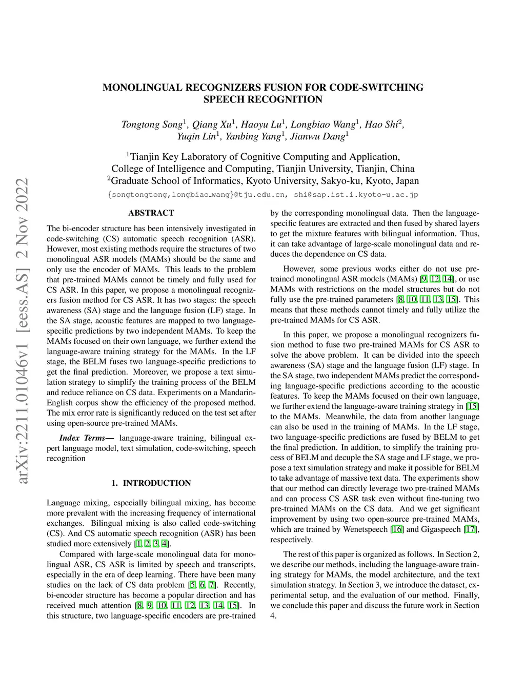 Monolingual Recognizers Fusion for Code-switching Speech Recognition