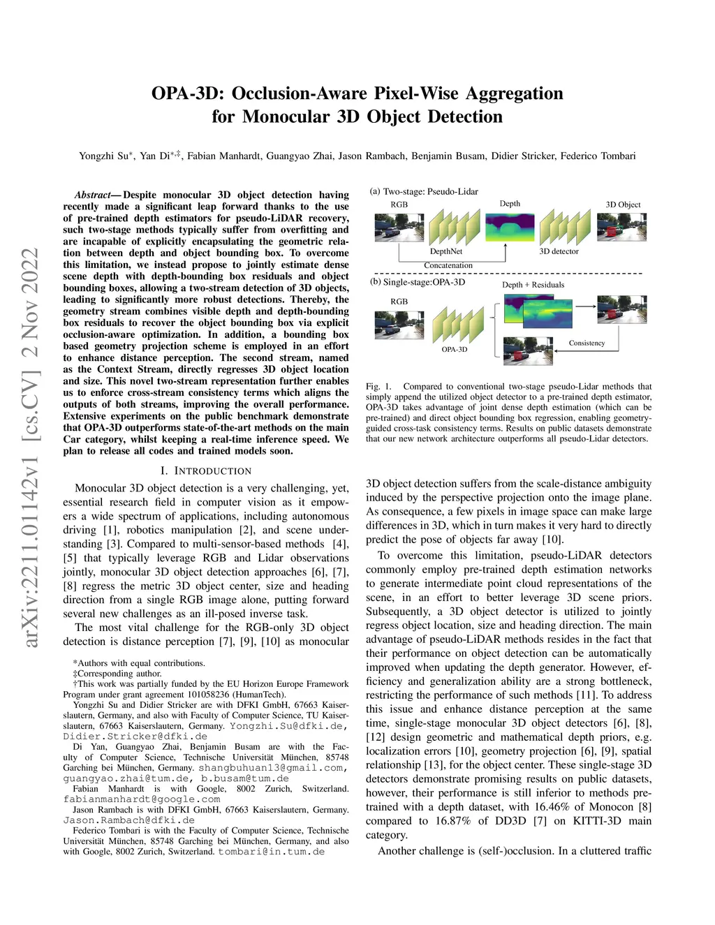 OPA-3D: Occlusion-Aware Pixel-Wise Aggregation for Monocular 3D Object
