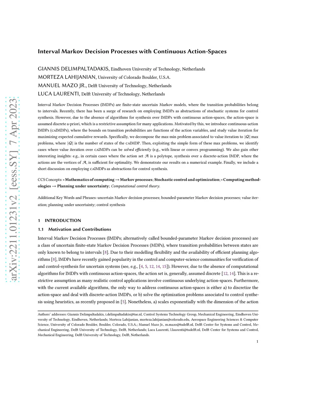 Interval Markov Decision Processes with Continuous Action-Spaces