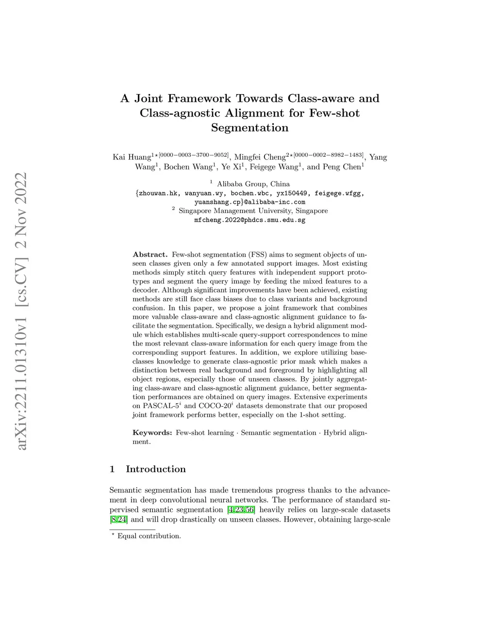 Few-shot segmentation (FSS) aims to segment objects of unseen classes given only a few annotated support images. Most existing methods simply stitch query features with independent support prototypes and segment the query image by feeding the mixed features to a decoder. Although significant improvements have been achieved, existing methods are still face class biases due to class variants and background confusion. In this paper, we propose a joint framework that combines more valuable class-aware and class-agnostic alignment guidance to facilitate the segmentation. Specifically, we design a hybrid alignment module which establishes multi-scale query-support correspondences to mine the most relevant class-aware information for each query image from the corresponding support features. In addition, we explore utilizing base-classes knowledge to generate class-agnostic prior mask which makes a distinction between real background and foreground by highlighting all object regions, especially those of unseen classes. By jointly aggregating class-aware and class-agnostic alignment guidance, better segmentation performances are obtained on query images. Extensive experiments on PASCAL- and COCO- datasets demonstrate that our proposed joint framework performs better, especially on the 1-shot setting.