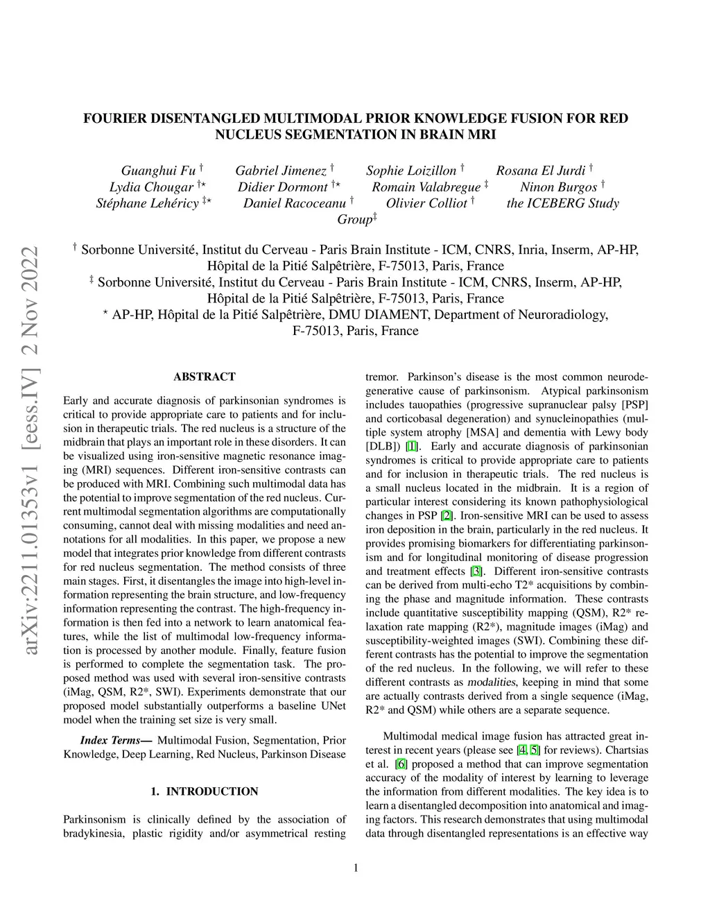 Fourier Disentangled Multimodal Prior Knowledge Fusion for Red Nucleus