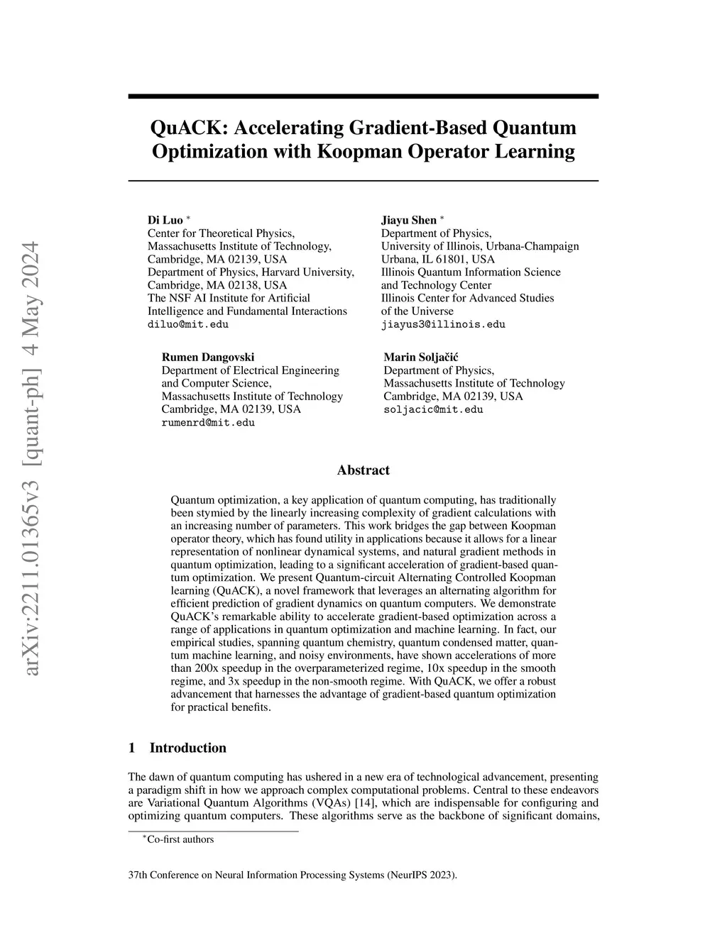 QuACK: Accelerating Gradient-Based Quantum Optimization with Koopman