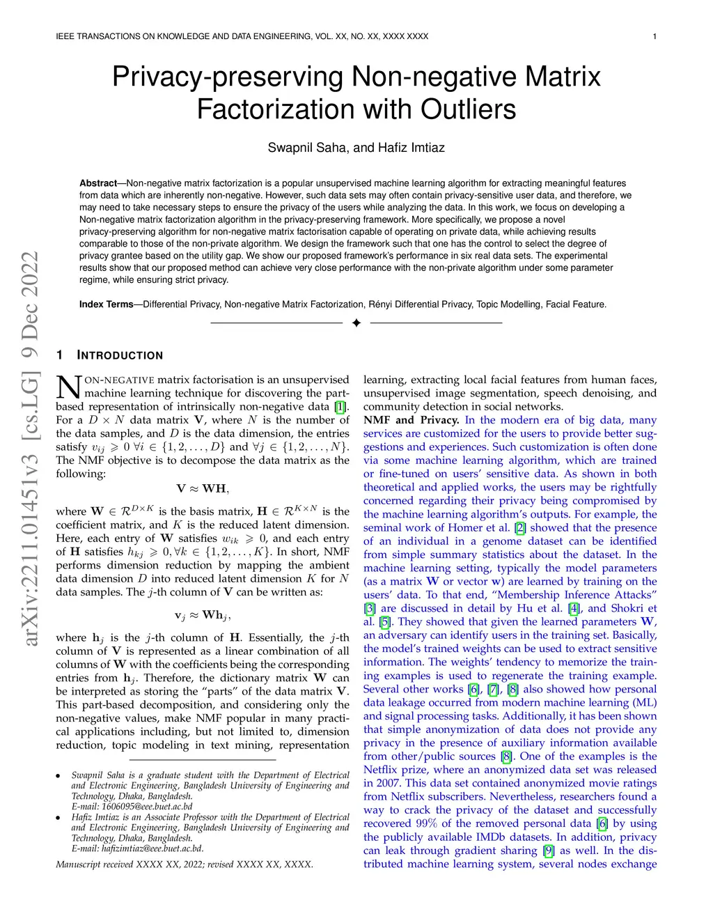 Privacy-preserving Non-negative Matrix Factorization with Outliers