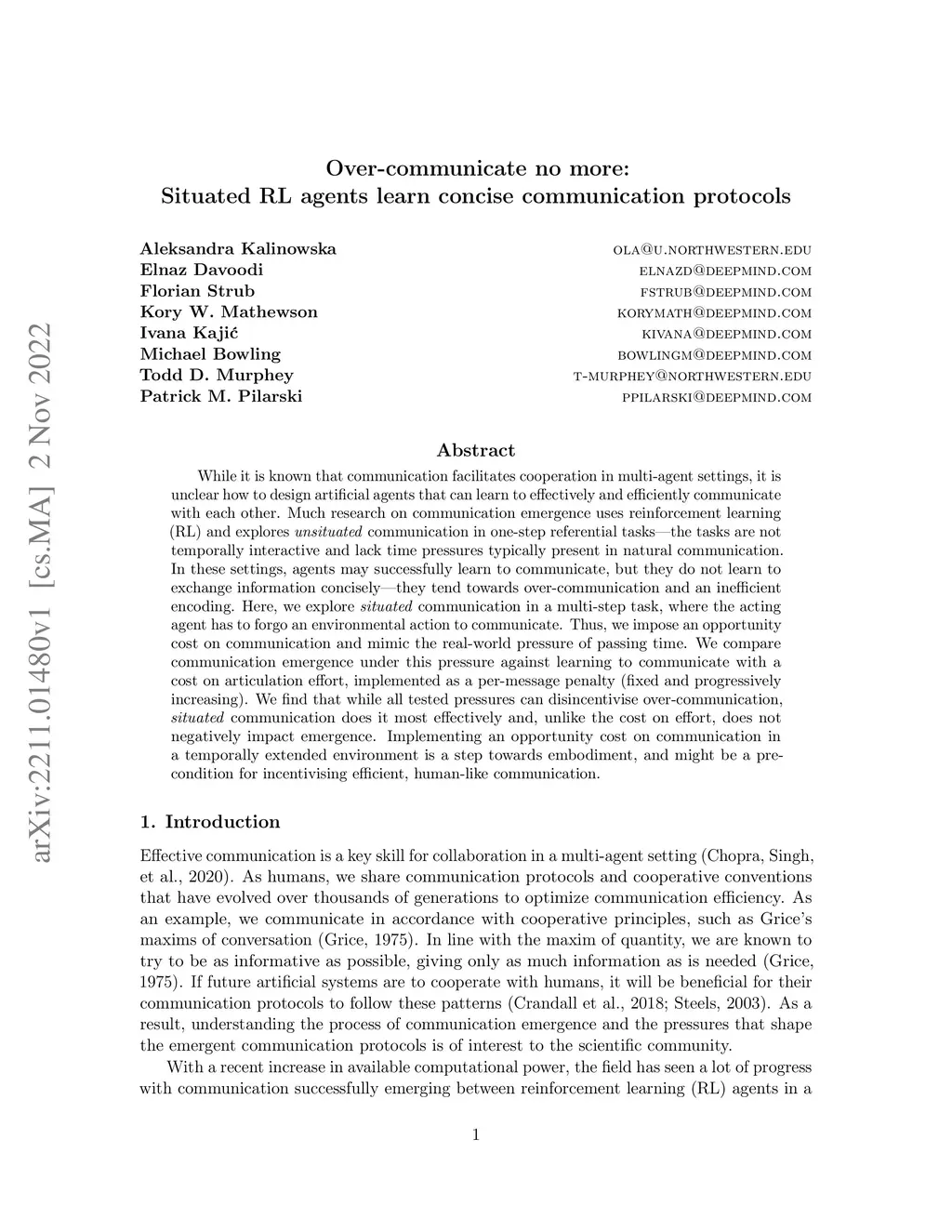 While it is known that communication facilitates cooperation in multi-agent settings, it is unclear how to design artificial agents that can learn to effectively and efficiently communicate with each other. Much research on communication emergence uses reinforcement learning (RL) and explores unsituated communication in one-step referential tasks -- the tasks are not temporally interactive and lack time pressures typically present in natural communication. In these settings, agents may successfully learn to communicate, but they do not learn to exchange information concisely -- they tend towards over-communication and an inefficient encoding. Here, we explore situated communication in a multi-step task, where the acting agent has to forgo an environmental action to communicate. Thus, we impose an opportunity cost on communication and mimic the real-world pressure of passing time. We compare communication emergence under this pressure against learning to communicate with a cost on articulation effort, implemented as a per-message penalty (fixed and progressively increasing). We find that while all tested pressures can disincentivise over-communication, situated communication does it most effectively and, unlike the cost on effort, does not negatively impact emergence. Implementing an opportunity cost on communication in a temporally extended environment is a step towards embodiment, and might be a pre-condition for incentivising efficient, human-like communication.