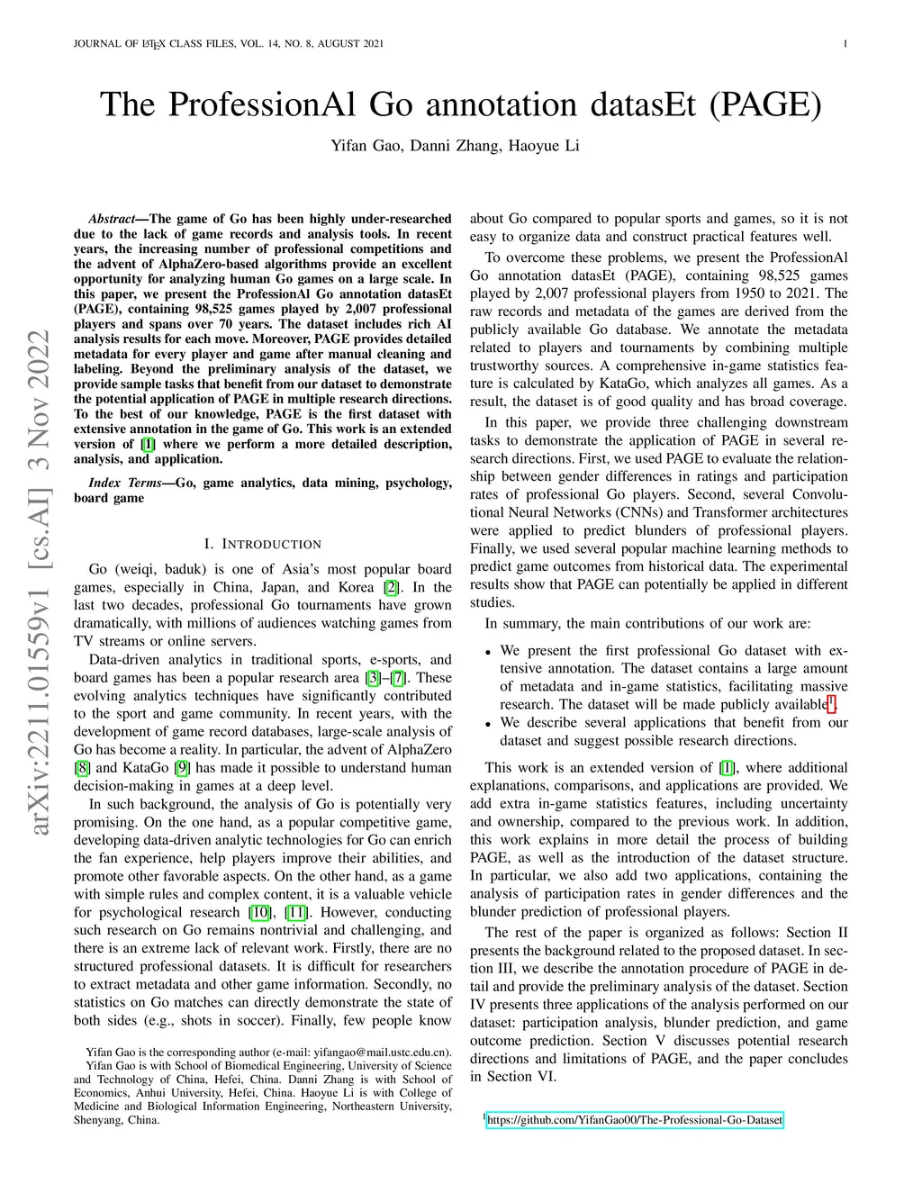 The ProfessionAl Go annotation datasEt (PAGE)