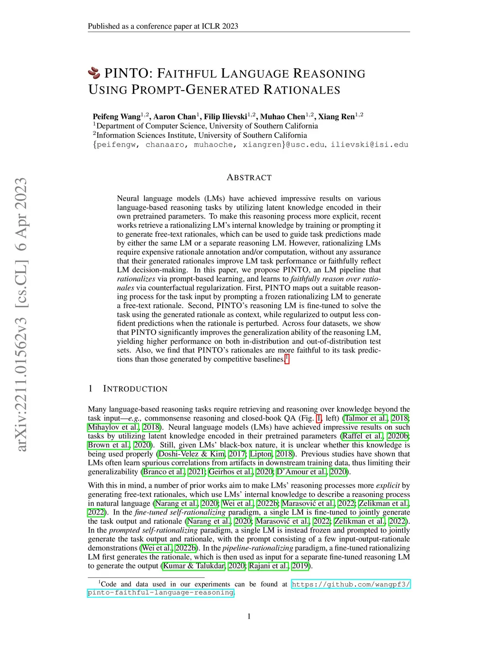 PINTO: Faithful Language Reasoning Using Prompt-Generated Rationales