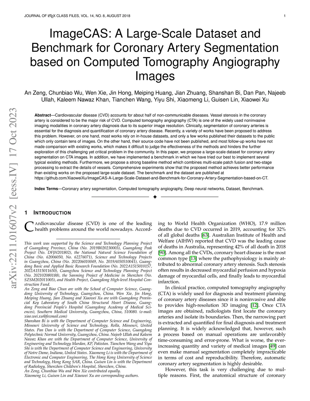 ImageCAS: A Large-Scale Dataset and Benchmark for Coronary Artery
