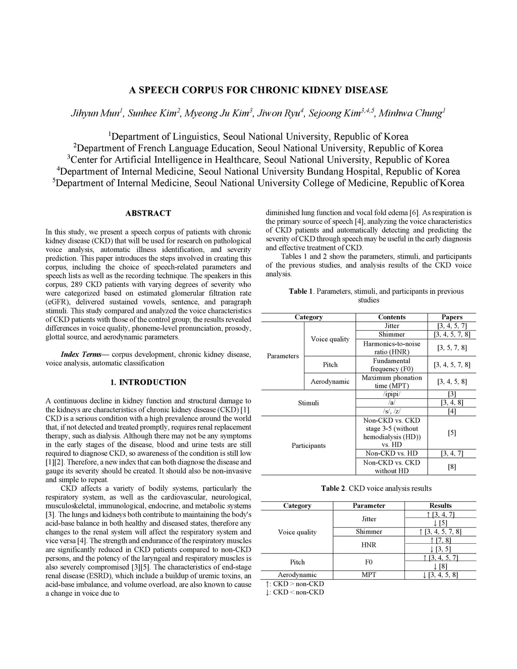 In this study, we present a speech corpus of patients with chronic kidney disease (CKD) that will be used for research on pathological voice analysis, automatic illness identification, and severity prediction. This paper introduces the steps involved in creating this corpus, including the choice of speech-related parameters and speech lists as well as the recording technique. The speakers in this corpus, 289 CKD patients with varying degrees of severity who were categorized based on estimated glomerular filtration rate (eGFR), delivered sustained vowels, sentence, and paragraph stimuli. This study compared and analyzed the voice characteristics of CKD patients with those of the control group; the results revealed differences in voice quality, phoneme-level pronunciation, prosody, glottal source, and aerodynamic parameters.