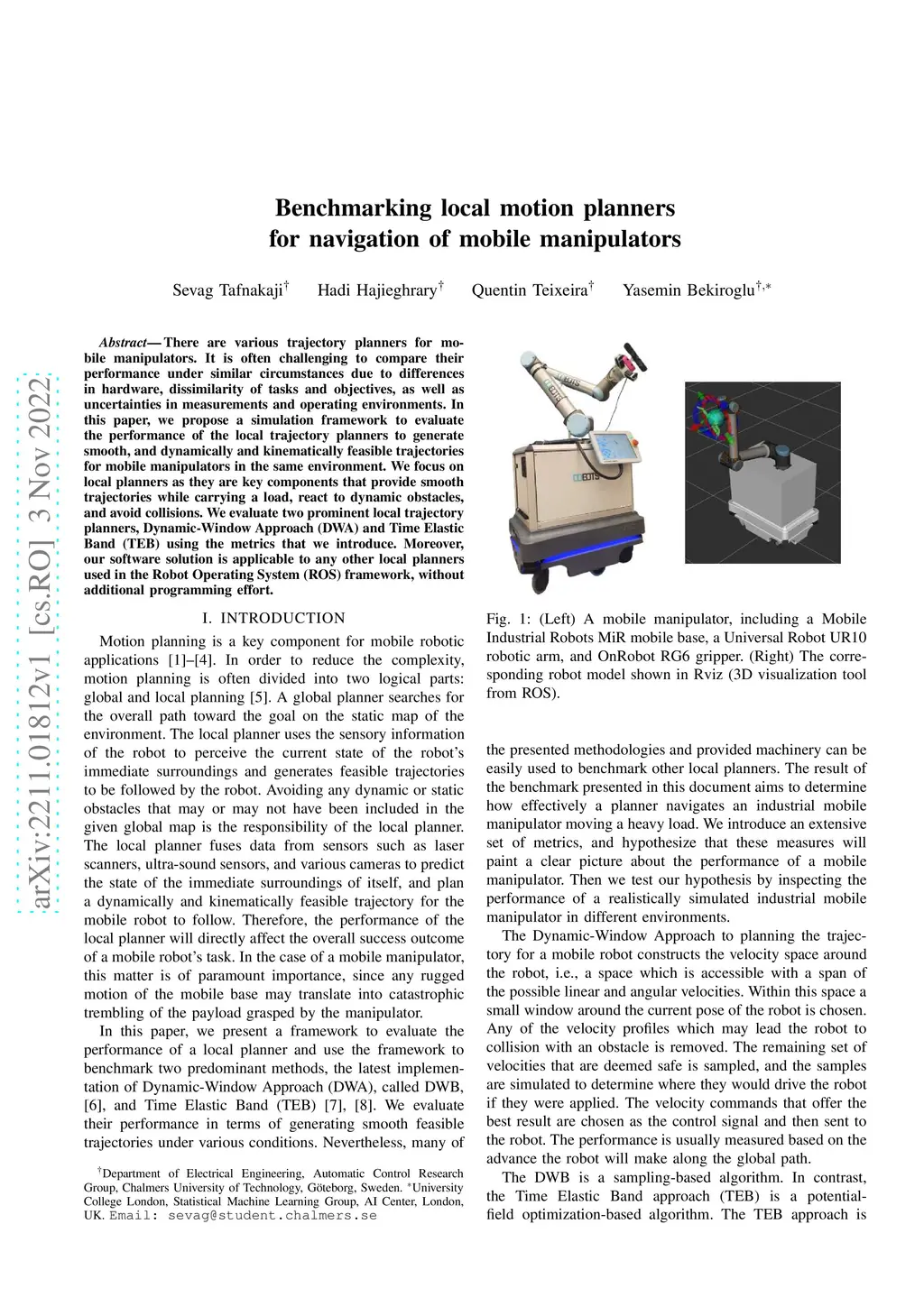 Benchmarking local motion planners for navigation of mobile manipulators