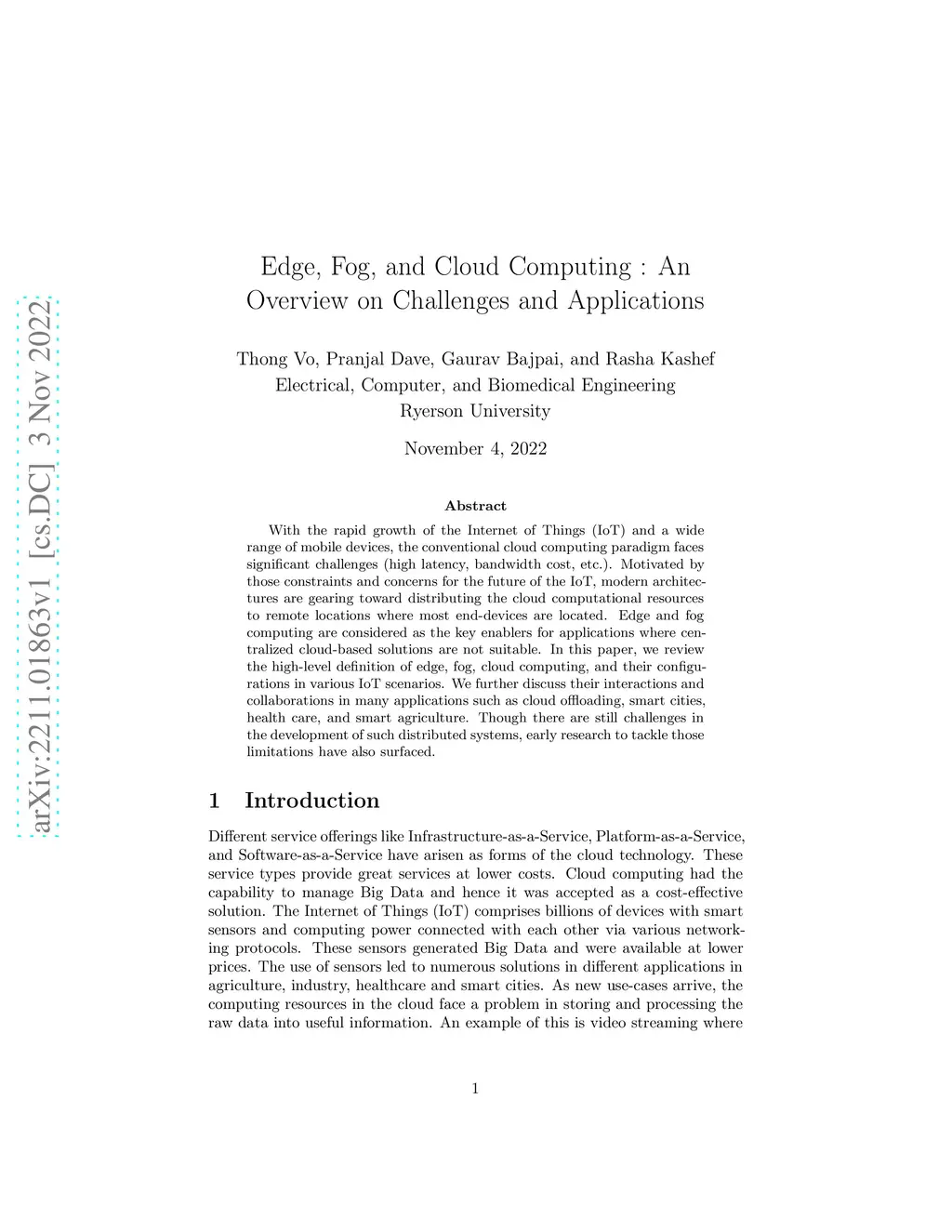 With the rapid growth of the Internet of Things (IoT) and a wide range of mobile devices, the conventional cloud computing paradigm faces significant challenges (high latency, bandwidth cost, etc.). Motivated by those constraints and concerns for the future of the IoT, modern architectures are gearing toward distributing the cloud computational resources to remote locations where most end-devices are located. Edge and fog computing are considered as the key enablers for applications where centralized cloud-based solutions are not suitable. In this paper, we review the high-level definition of edge, fog, cloud computing, and their configurations in various IoT scenarios. We further discuss their interactions and collaborations in many applications such as cloud offloading, smart cities, health care, and smart agriculture. Though there are still challenges in the development of such distributed systems, early research to tackle those limitations have also surfaced.