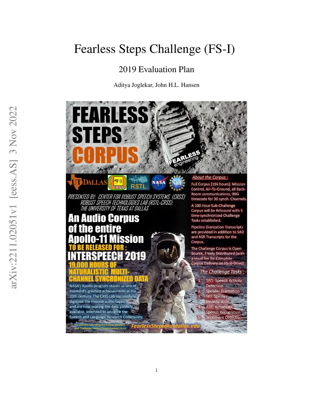 Fearless Steps Challenge Phase-1 Evaluation Plan