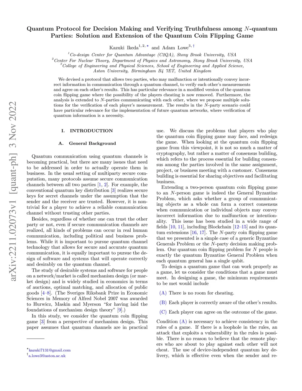 We devised a protocol that allows two parties, who may malfunction or intentionally convey incorrect information in communication through a quantum channel, to verify each other's measurements and agree on each other's results. This has particular relevance in a modified version of the quantum coin flipping game where the possibility of the players cheating is now removed. Furthermore, the analysis is extended to -parties communicating with each other, where we propose multiple solutions for the verification of each player's measurement. The results in the -party scenario could have particular relevance for the implementation of future quantum networks, where verification of quantum information is a necessity.