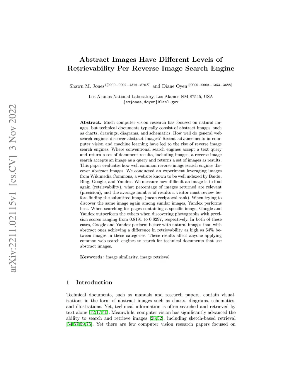 Much computer vision research has focused on natural images, but technical documents typically consist of abstract images, such as charts, drawings, diagrams, and schematics. How well do general web search engines discover abstract images? Recent advancements in computer vision and machine learning have led to the rise of reverse image search engines. Where conventional search engines accept a text query and return a set of document results, including images, a reverse image search accepts an image as a query and returns a set of images as results. This paper evaluates how well common reverse image search engines discover abstract images. We conducted an experiment leveraging images from Wikimedia Commons, a website known to be well indexed by Baidu, Bing, Google, and Yandex. We measure how difficult an image is to find again (retrievability), what percentage of images returned are relevant (precision), and the average number of results a visitor must review before finding the submitted image (mean reciprocal rank). When trying to discover the same image again among similar images, Yandex performs best. When searching for pages containing a specific image, Google and Yandex outperform the others when discovering photographs with precision scores ranging from 0.8191 to 0.8297, respectively. In both of these cases, Google and Yandex perform better with natural images than with abstract ones achieving a difference in retrievability as high as 54\% between images in these categories. These results affect anyone applying common web search engines to search for technical documents that use abstract images.
