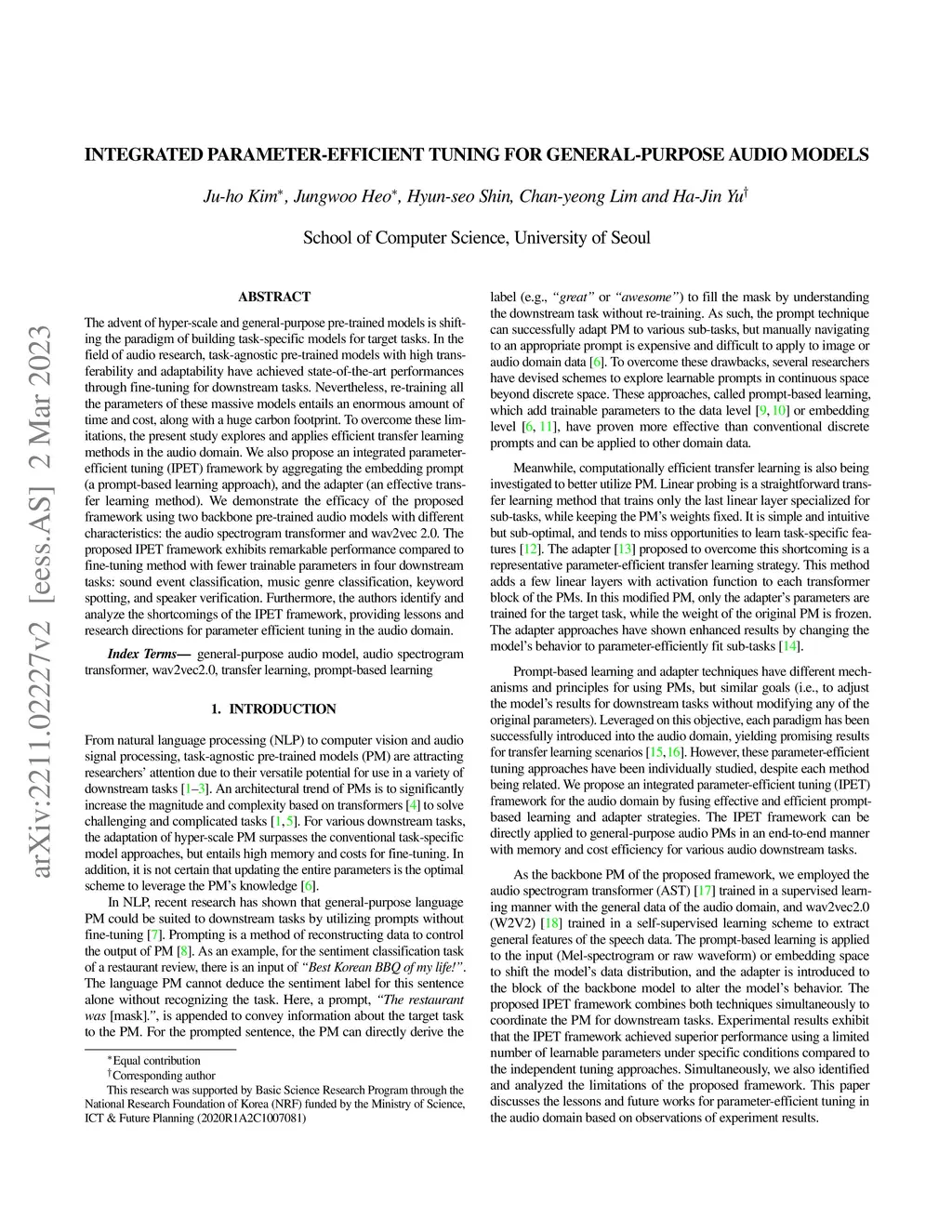 Integrated Parameter-Efficient Tuning for General-Purpose Audio Models