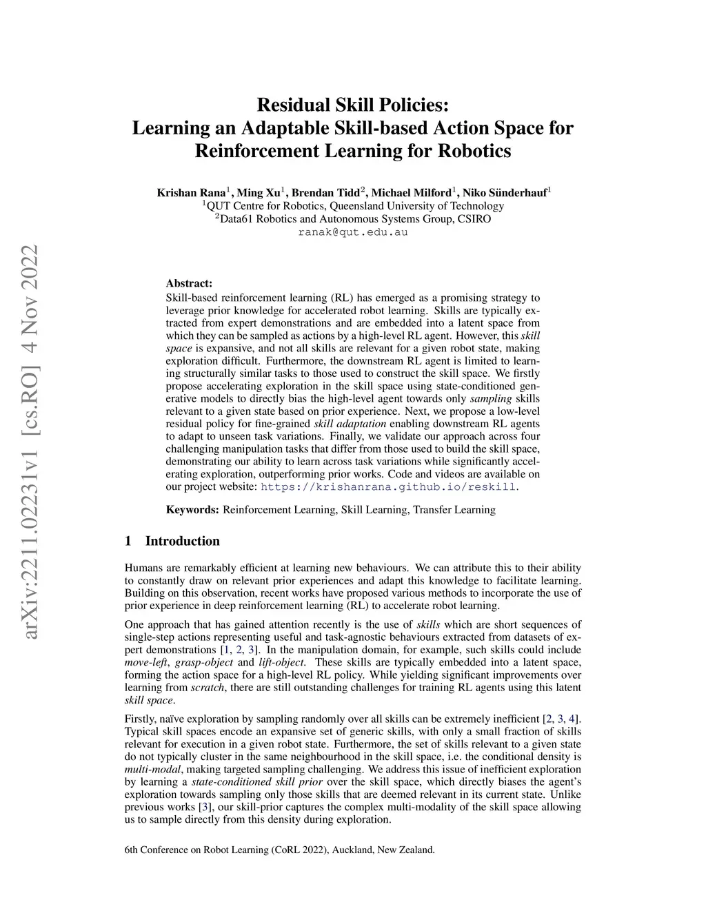 Residual Skill Policies: Learning an Adaptable Skill-based Action Space