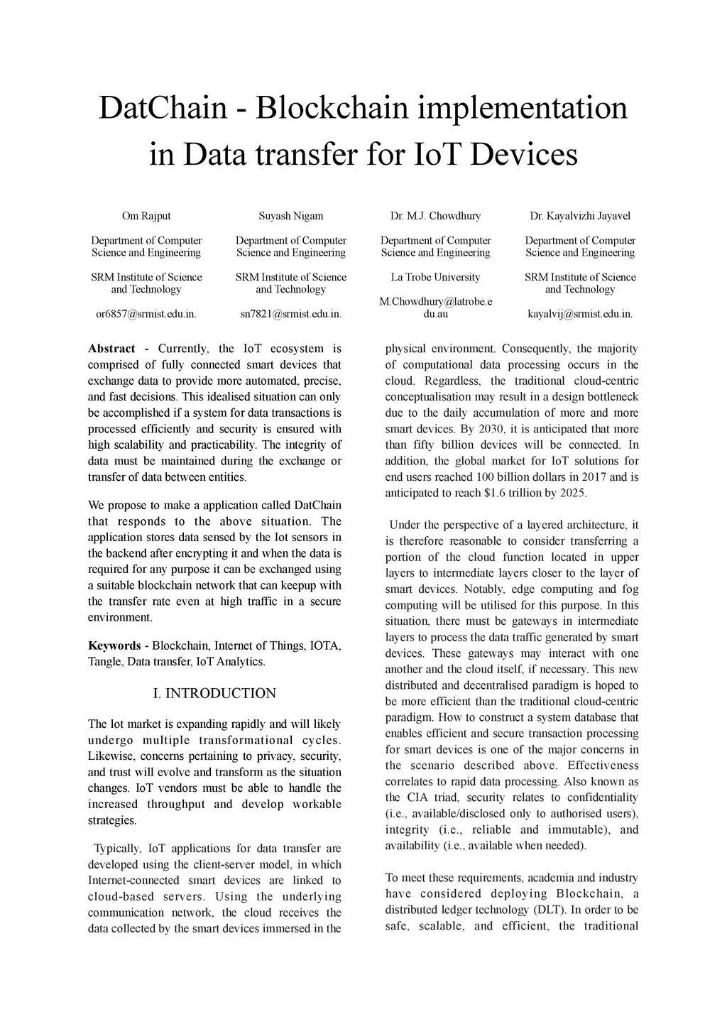 DatChain -- Blockchain implementation in Data transfer for IoT Devices
