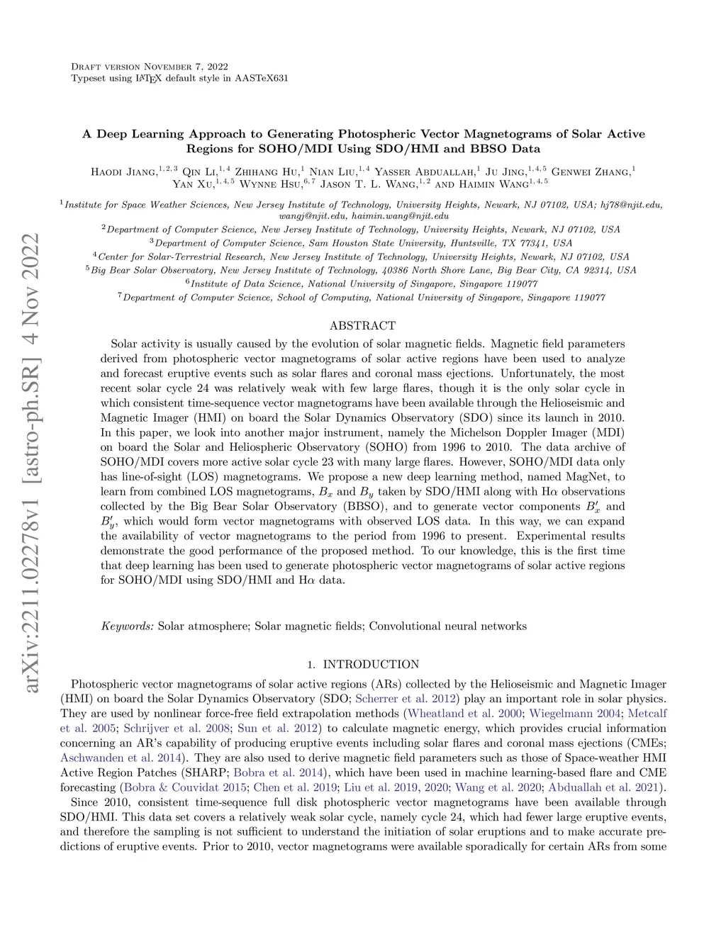 Solar activity is usually caused by the evolution of solar magnetic fields. Magnetic field parameters derived from photospheric vector magnetograms of solar active regions have been used to analyze and forecast eruptive events such as solar flares and coronal mass ejections. Unfortunately, the most recent solar cycle 24 was relatively weak with few large flares, though it is the only solar cycle in which consistent time-sequence vector magnetograms have been available through the Helioseismic and Magnetic Imager (HMI) on board the Solar Dynamics Observatory (SDO) since its launch in 2010. In this paper, we look into another major instrument, namely the Michelson Doppler Imager (MDI) on board the Solar and Heliospheric Observatory (SOHO) from 1996 to 2010. The data archive of SOHO/MDI covers more active solar cycle 23 with many large flares. However, SOHO/MDI data only has line-of-sight (LOS) magnetograms. We propose a new deep learning method, named MagNet, to learn from combined LOS magnetograms, Bx and By taken by SDO/HMI along with H-alpha observations collected by the Big Bear Solar Observatory (BBSO), and to generate vector components Bx' and By', which would form vector magnetograms with observed LOS data. In this way, we can expand the availability of vector magnetograms to the period from 1996 to present. Experimental results demonstrate the good performance of the proposed method. To our knowledge, this is the first time that deep learning has been used to generate photospheric vector magnetograms of solar active regions for SOHO/MDI using SDO/HMI and H-alpha data.