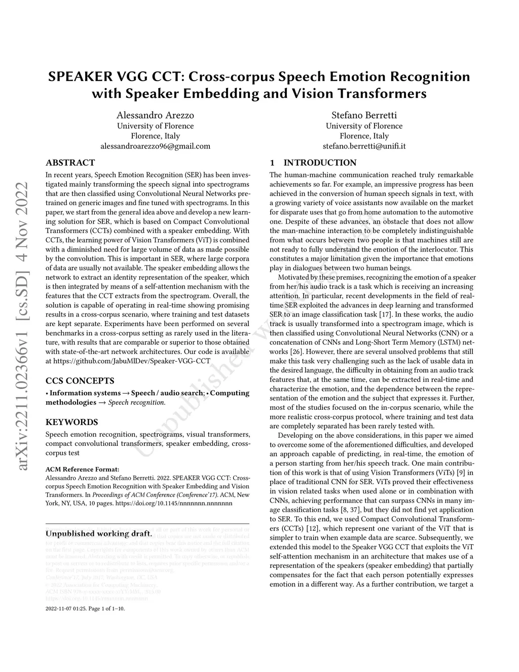 SPEAKER VGG CCT: Cross-corpus Speech Emotion Recognition with Speaker