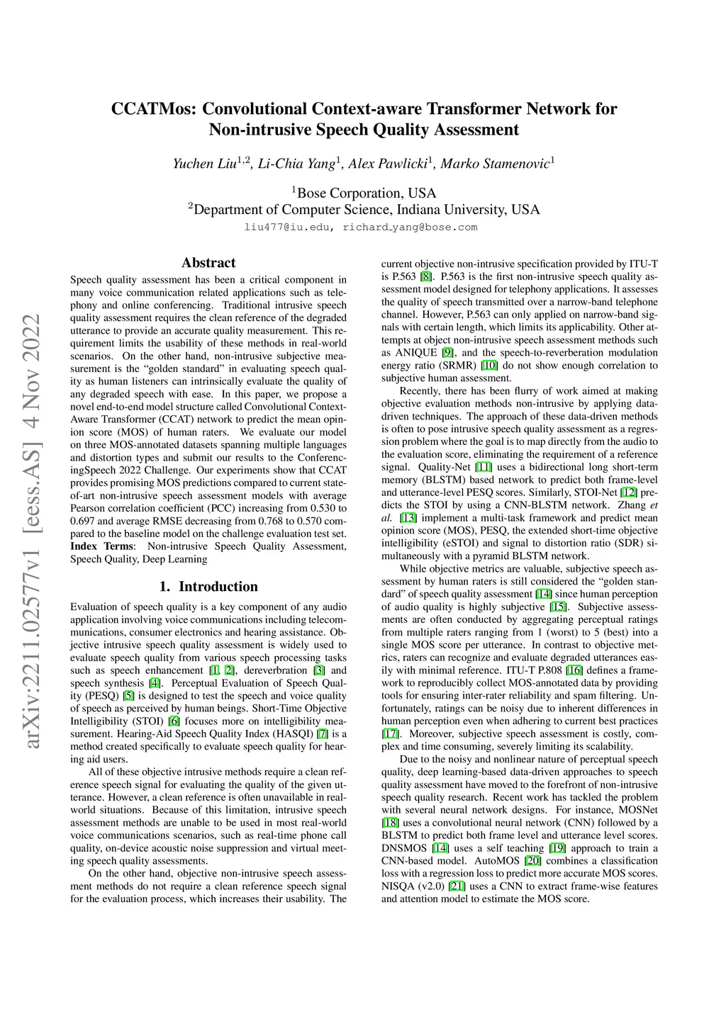 Non-intrusive Speech Quality Assessment