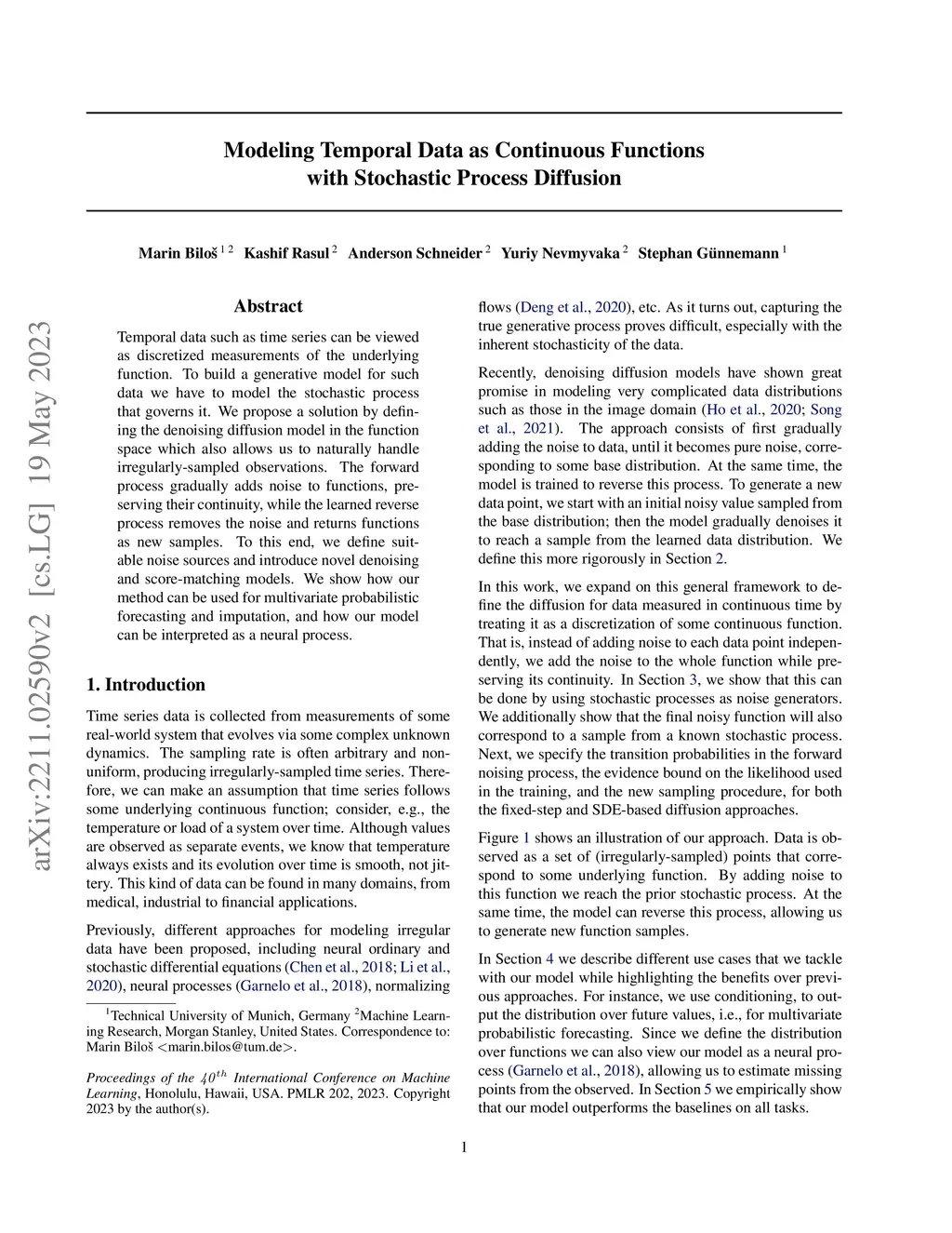 Modeling Temporal Data as Continuous Functions with Stochastic Process