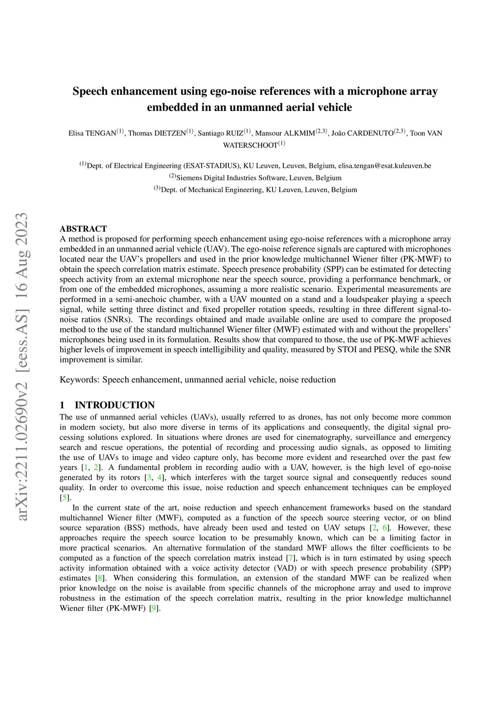 Speech enhancement using ego-noise references with a microphone array