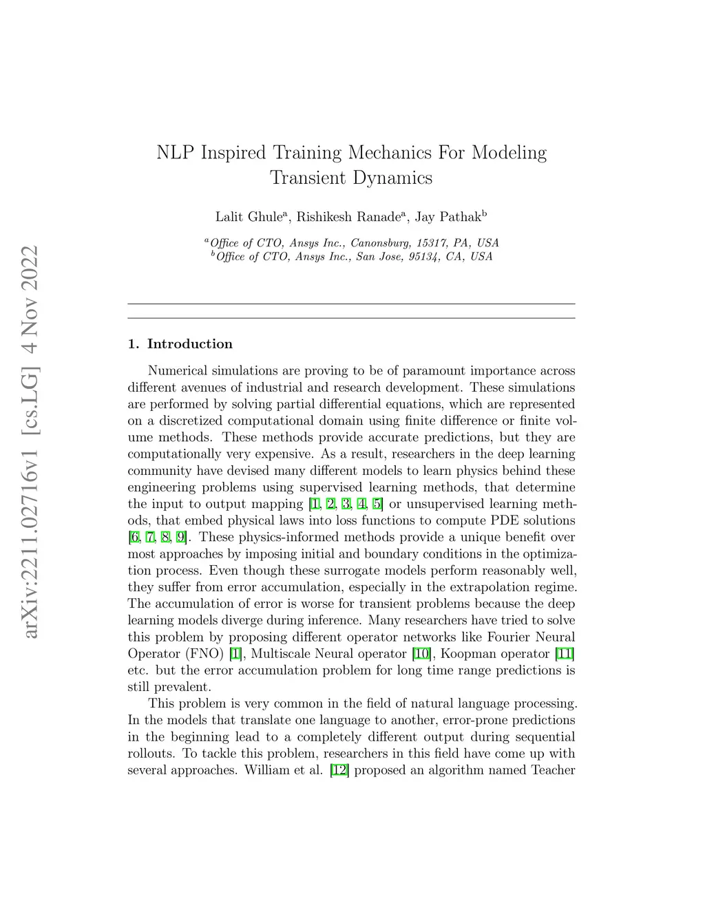 NLP Inspired Training Mechanics For Modeling Transient Dynamics