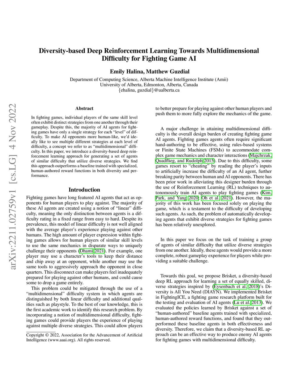 Difficulty for Fighting Game AI
