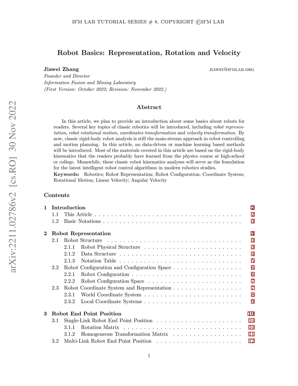 In this article, we plan to provide an introduction about some basics about robots for readers. Several key topics of classic robotics will be introduced, including robot representation, robot rotational motion, coordinates transformation and velocity transformation. By now, classic rigid-body robot analysis is still the main-stream approach in robot controlling and motion planning. In this article, no data-driven or machine learning based methods will be introduced. Most of the materials covered in this article are based on the rigid-body kinematics that the readers probably have learned from the physics course at high-school or college. Meanwhile, these classic robot kinematics analyses will serve as the foundation for the latest intelligent robot control algorithms in modern robotics studies.