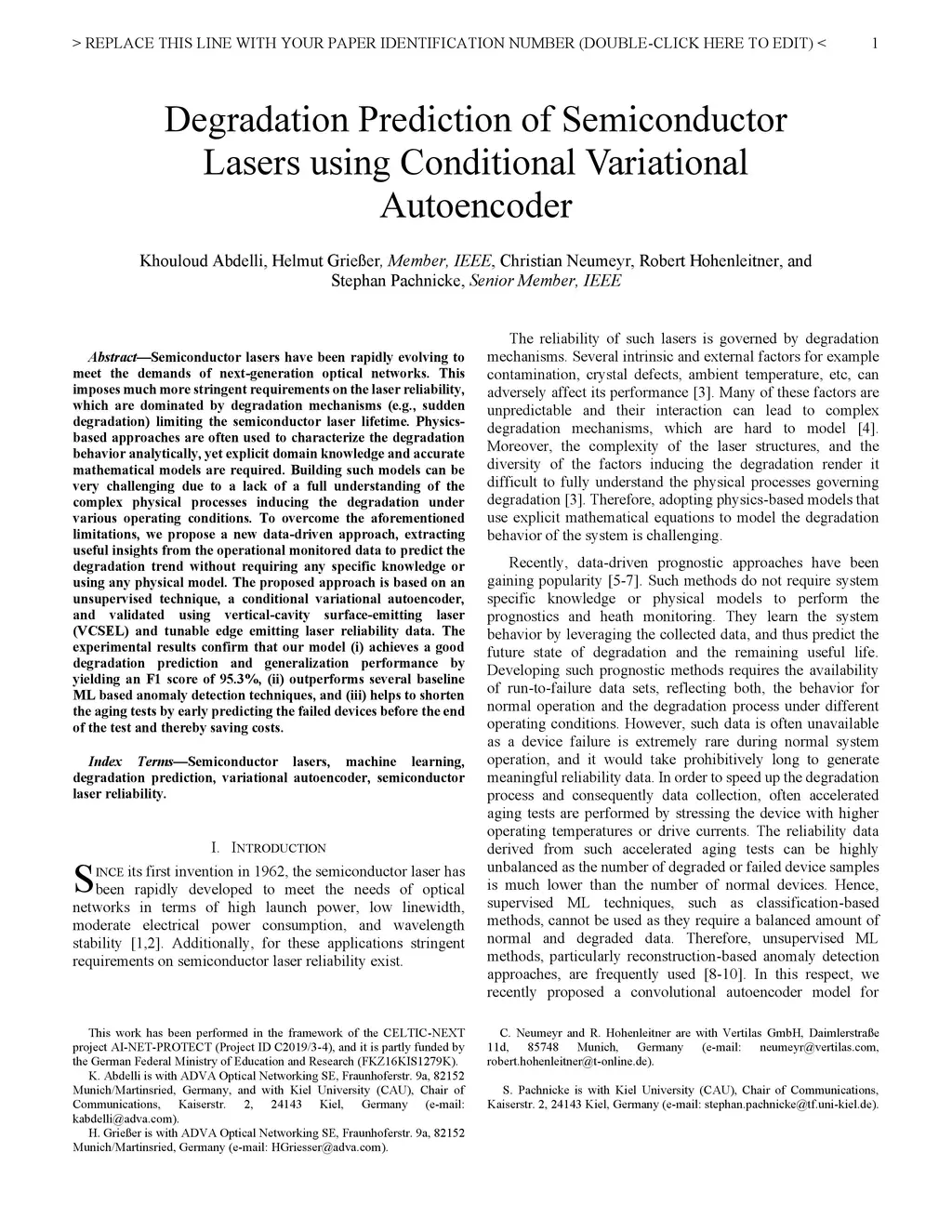 Degradation Prediction of Semiconductor Lasers using Conditional