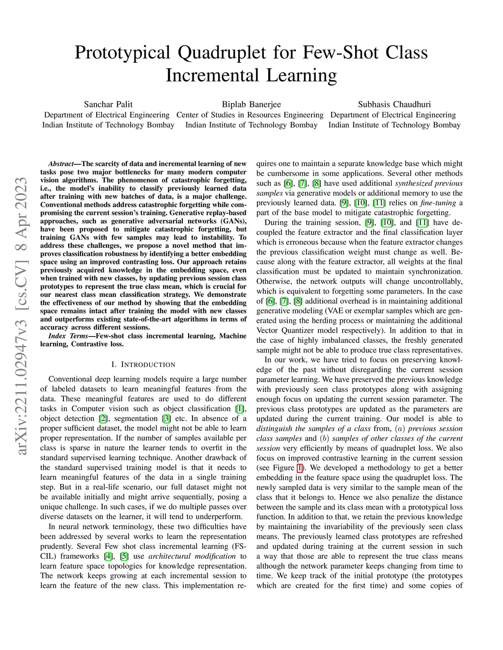 Prototypical quadruplet for few-shot class incremental learning
