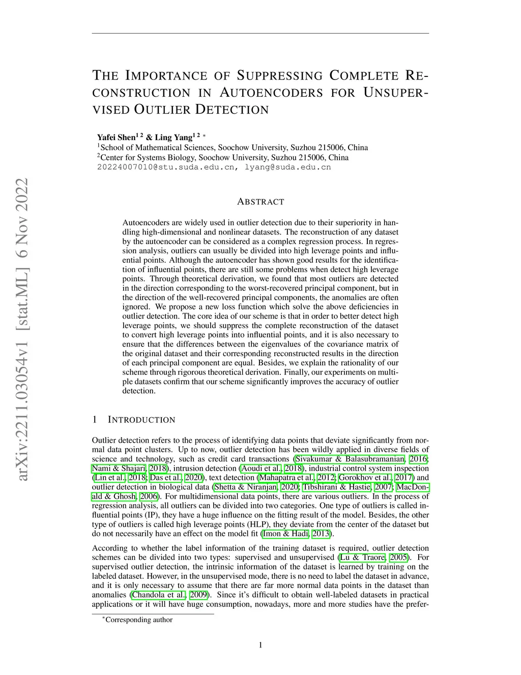 Autoencoders are widely used in outlier detection due to their superiority in handling high-dimensional and nonlinear datasets. The reconstruction of any dataset by the autoencoder can be considered as a complex regression process. In regression analysis, outliers can usually be divided into high leverage points and influential points. Although the autoencoder has shown good results for the identification of influential points, there are still some problems when detect high leverage points. Through theoretical derivation, we found that most outliers are detected in the direction corresponding to the worst-recovered principal component, but in the direction of the well-recovered principal components, the anomalies are often ignored. We propose a new loss function which solve the above deficiencies in outlier detection. The core idea of our scheme is that in order to better detect high leverage points, we should suppress the complete reconstruction of the dataset to convert high leverage points into influential points, and it is also necessary to ensure that the differences between the eigenvalues of the covariance matrix of the original dataset and their corresponding reconstructed results in the direction of each principal component are equal. Besides, we explain the rationality of our scheme through rigorous theoretical derivation. Finally, our experiments on multiple datasets confirm that our scheme significantly improves the accuracy of outlier detection.