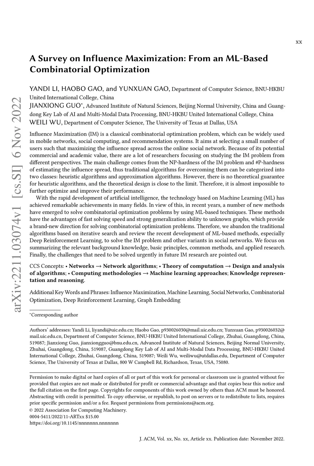A Survey on Influence Maximization: From an ML-Based Combinatorial