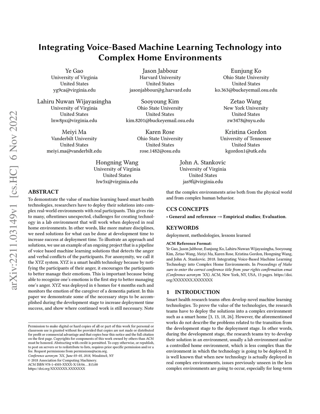 Integrating Voice-Based Machine Learning Technology into Complex Home