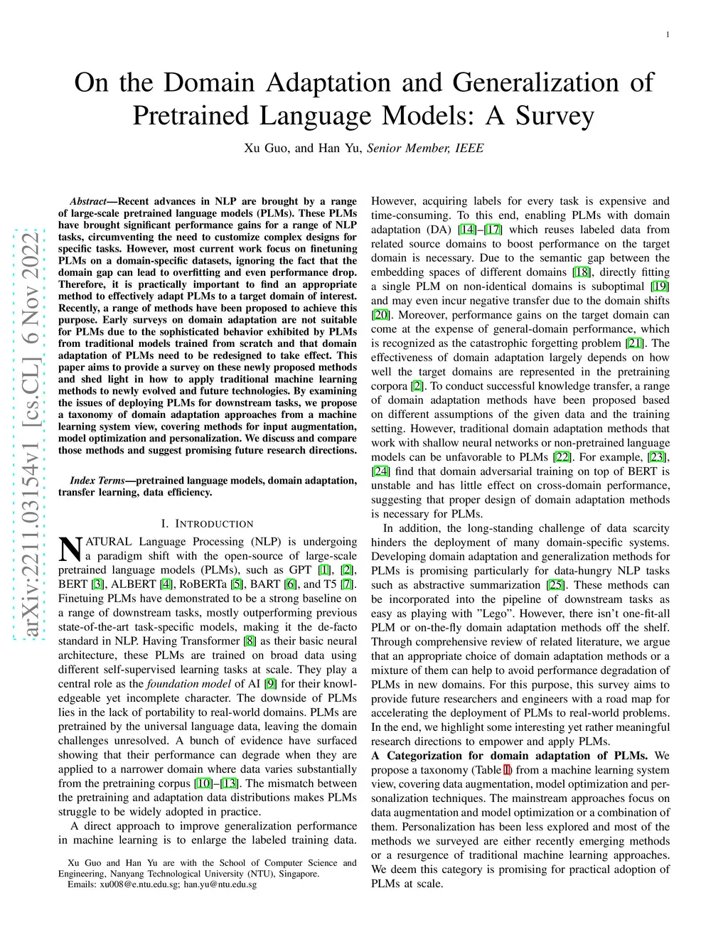 Recent advances in NLP are brought by a range of large-scale pretrained language models (PLMs). These PLMs have brought significant performance gains for a range of NLP tasks, circumventing the need to customize complex designs for specific tasks. However, most current work focus on finetuning PLMs on a domain-specific datasets, ignoring the fact that the domain gap can lead to overfitting and even performance drop. Therefore, it is practically important to find an appropriate method to effectively adapt PLMs to a target domain of interest. Recently, a range of methods have been proposed to achieve this purpose. Early surveys on domain adaptation are not suitable for PLMs due to the sophisticated behavior exhibited by PLMs from traditional models trained from scratch and that domain adaptation of PLMs need to be redesigned to take effect. This paper aims to provide a survey on these newly proposed methods and shed light in how to apply traditional machine learning methods to newly evolved and future technologies. By examining the issues of deploying PLMs for downstream tasks, we propose a taxonomy of domain adaptation approaches from a machine learning system view, covering methods for input augmentation, model optimization and personalization. We discuss and compare those methods and suggest promising future research directions.