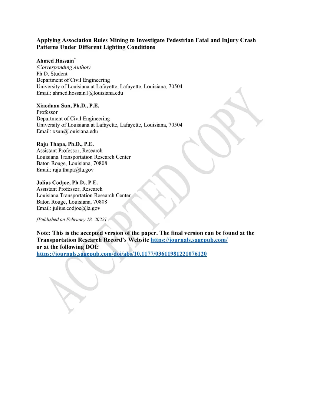 Applying Association Rules Mining to Investigate Pedestrian Fatal and