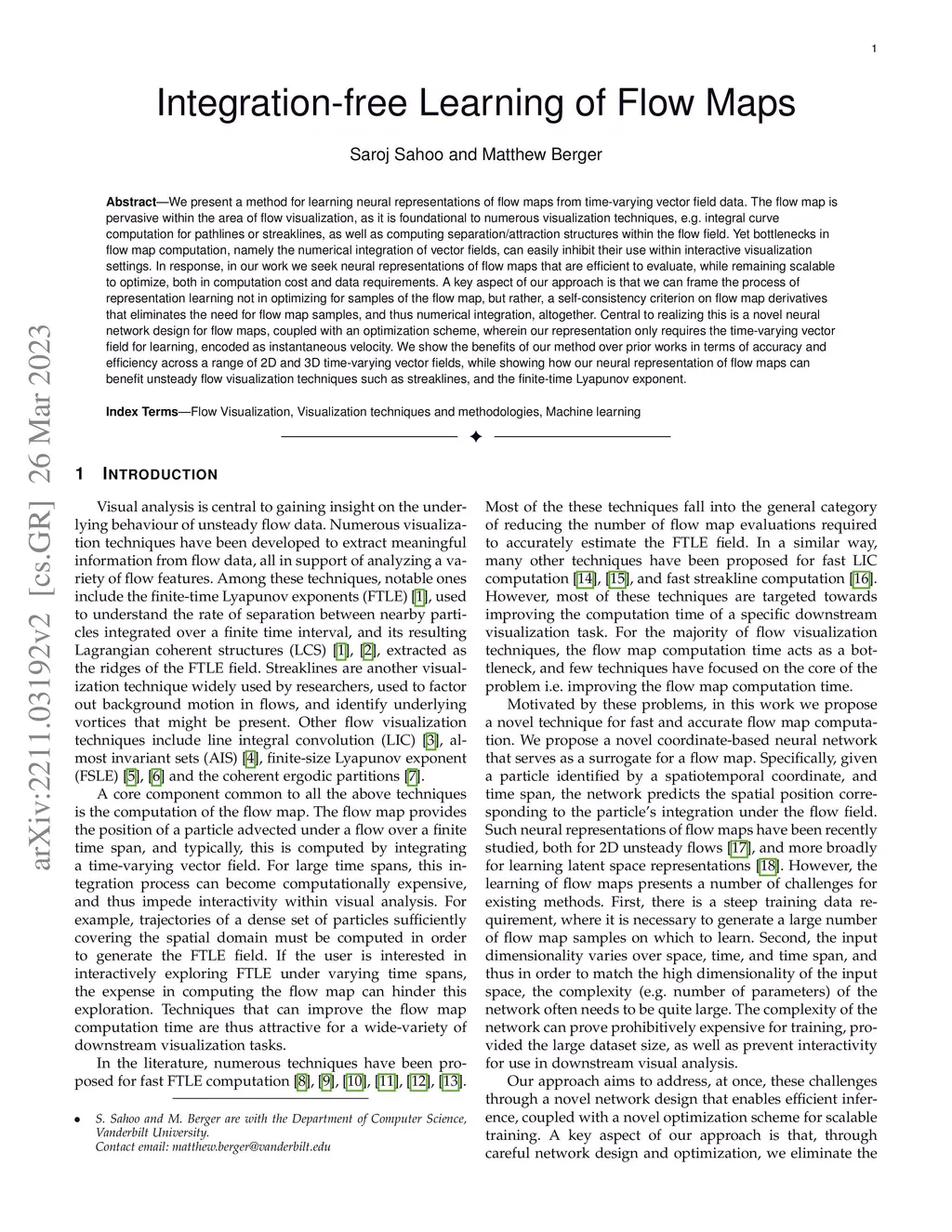 We present a method for learning neural representations of flow maps from time-varying vector field data. The flow map is pervasive within the area of flow visualization, as it is foundational to numerous visualization techniques, e.g. integral curve computation for pathlines or streaklines, as well as computing separation/attraction structures within the flow field. Yet bottlenecks in flow map computation, namely the numerical integration of vector fields, can easily inhibit their use within interactive visualization settings. In response, in our work we seek neural representations of flow maps that are efficient to evaluate, while remaining scalable to optimize, both in computation cost and data requirements. A key aspect of our approach is that we can frame the process of representation learning not in optimizing for samples of the flow map, but rather, a self-consistency criterion on flow map derivatives that eliminates the need for flow map samples, and thus numerical integration, altogether. Central to realizing this is a novel neural network design for flow maps, coupled with an optimization scheme, wherein our representation only requires the time-varying vector field for learning, encoded as instantaneous velocity. We show the benefits of our method over prior works in terms of accuracy and efficiency across a range of 2D and 3D time-varying vector fields, while showing how our neural representation of flow maps can benefit unsteady flow visualization techniques such as streaklines, and the finite-time Lyapunov exponent.